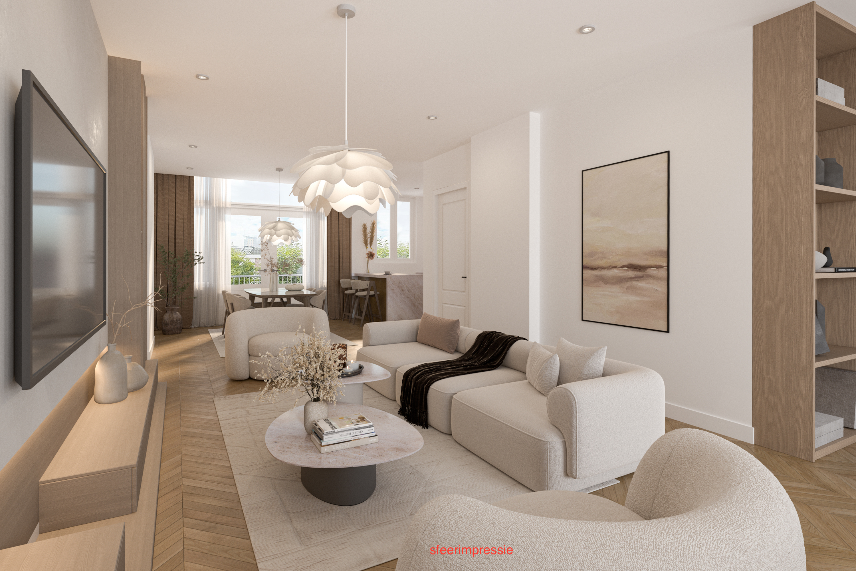 - The second photo is purely an impression of the atmosphere; there are also two floor plans, one of which is an artist’s impression — this still needs to be realized.