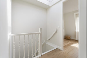 Tweede verdieping: Overloop/hal, twee ruime slaapkamers en een tweede badkamer.