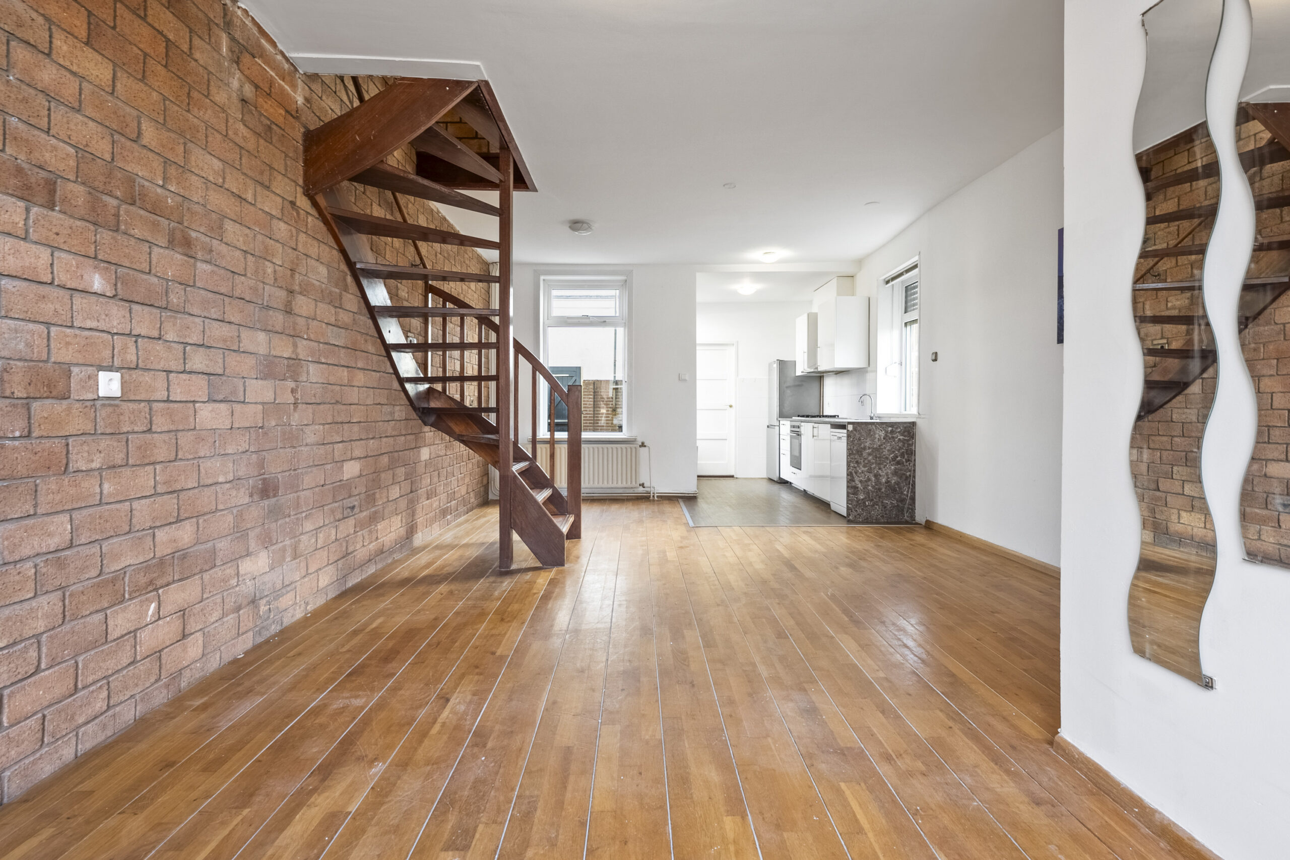 Begane grond: Entree met apart toilet, ruime woonkamer met open keuken. Achter de keuken bevindt zich de bijkeuken, die tevens toegang biedt tot de tuin.